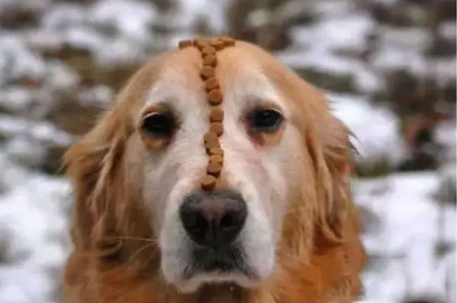 這是個循序漸進的過程,哪怕開始狗狗只有2秒不動,也要馬上獎勵狗狗。慢慢狗狗就會明白了,這時候不可以動頭,要是不動,一會就有好吃的了。然后逐漸的延長時間。