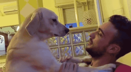 8,不放過(guò)任何一個(gè)可以舔你的機(jī)會(huì),這是狗子表達(dá)愛的方式之一! 舔舐,確實(shí)是狗狗表達(dá)愛意的最日常的一種方式,畢竟狗媽媽就是這么教它們的... 它們并不知道自己的口水里都是細(xì)菌,只知道這代表了愛! 如果你不喜歡被舔,可以用揉頭和撫摸來(lái)反擊,然后讓它爽到都忘記要舔你這件事...