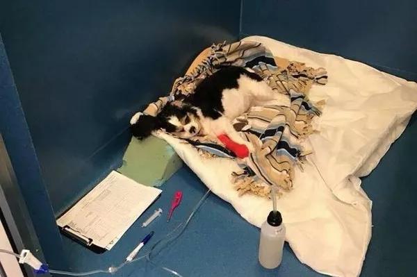 醫生在觀察24小時后決定給它催吐,可卻一點兒效果也沒有,最后只好手術剖開它的肚子。