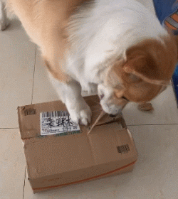 買回來的快遞懶得開,就直接先扔給了狗砸~